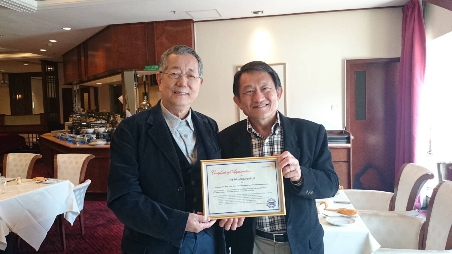 In 2015, Mr Shan Kai LEE, founder of HKS Education Fund, received a Certificate of Appreciation from World Vision.